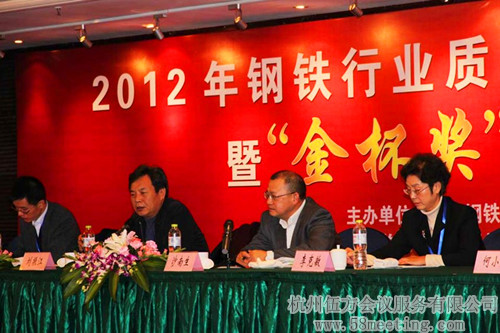 2012年12月20日,鋼鐵行業(yè)質(zhì)量品牌建設(shè)總結(jié)暨“金杯獎”表彰大會在杭州召開。據(jù)伍方會議服務(wù)了解,工業(yè)和信息化部科技司副司長沙南生出席會議并講話。鋼鐵協(xié)會黨委書記、副會長劉振江等出席活動。