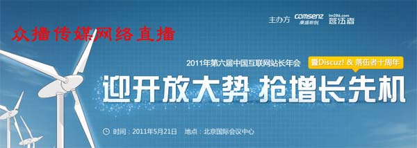 2011互聯(lián)網(wǎng)站長(zhǎng)大會(huì),眾播傳媒將進(jìn)行網(wǎng)絡(luò)同步直播